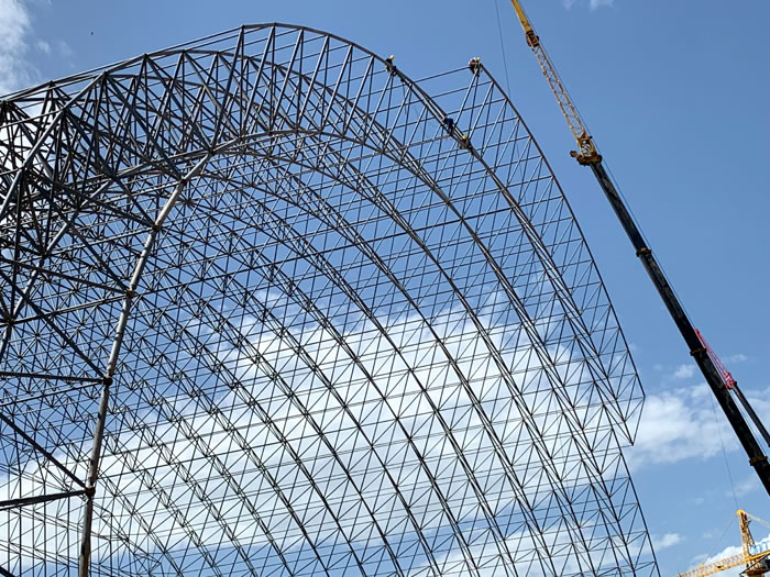 (2)网架加工前应对现场尺寸进行复测,确认无误后方可进行加工、安装;网架制作、运输、安装应遵守《空间网格结构技术规程》JGJ7-2010、《钢网架津南螺栓球节点》JG/T 10-2009、《钢网架津南螺栓球节点用高强度螺栓》 GB/T 16939-2016、《津南钢结构津南工程津南施工规范》 GB50755-2012、《津南钢结构津南工程津南施工质量验收标准》 GB50205-2020。
